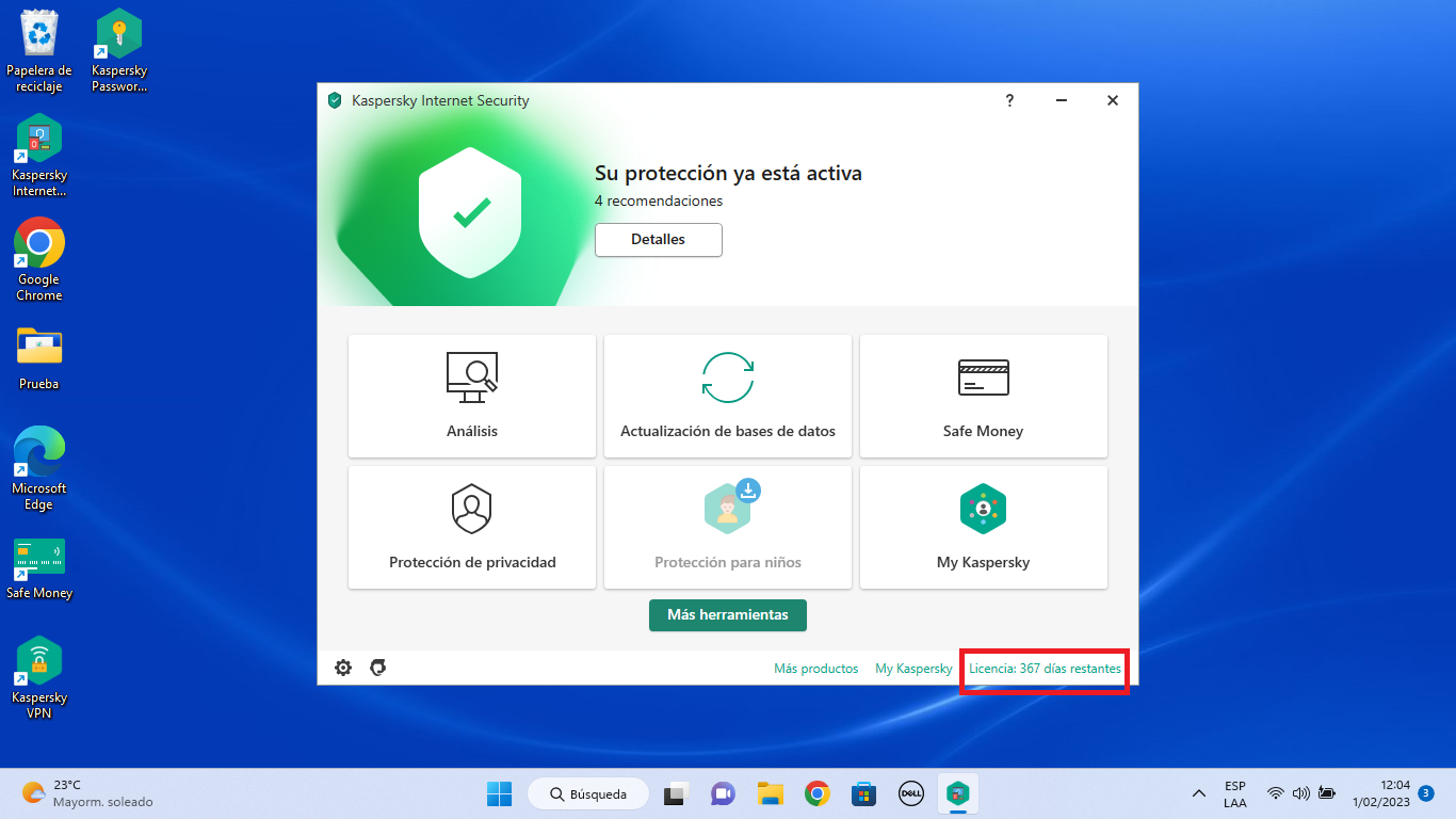 Como podemos confirmar, nuestra licencia está activa contando con 1 año de vigencia.