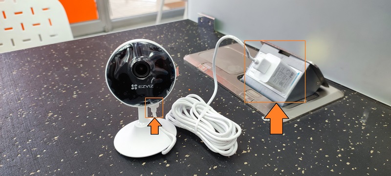 Conectamos a la corriente nuestra cámara por medio del cable micro-USB y el adaptador de corriente.