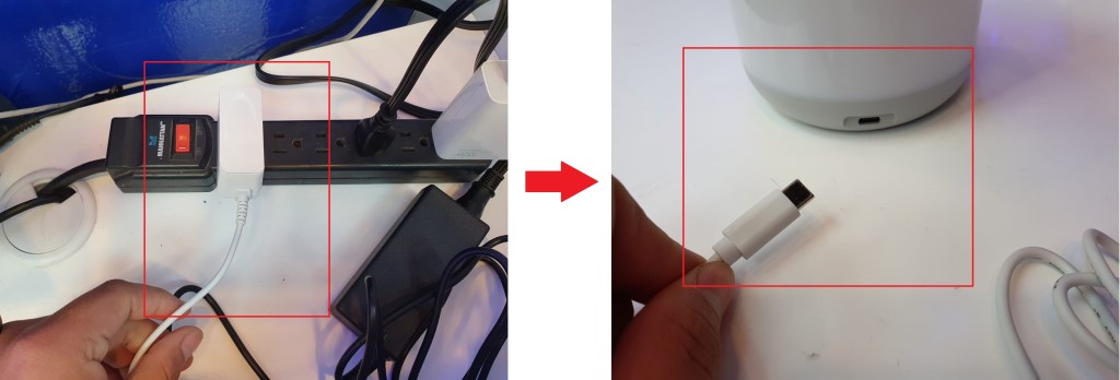 Vamos a conectar nuestro transformador a corriente y la conectaremos a nuestra lámpara por el puerto Tipo C que se encuentra en la parte trasera.
