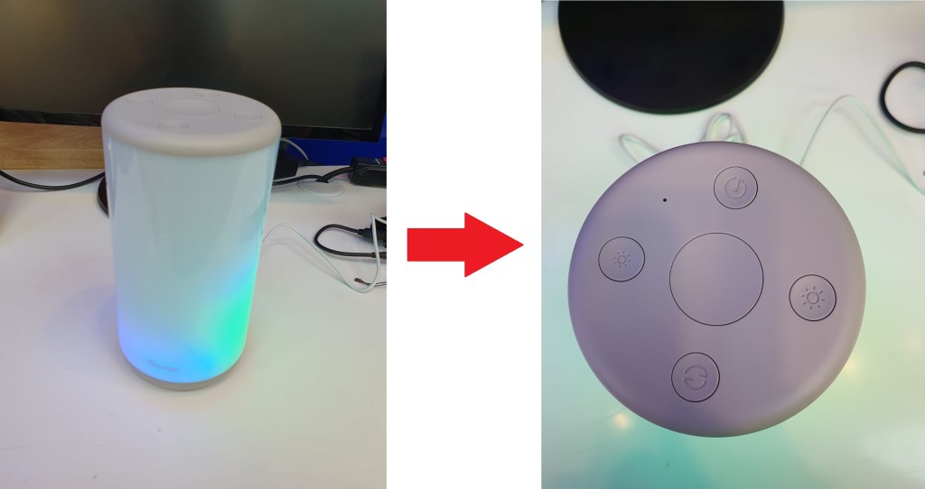 Podemos confirmar que nuestra lámpara enciende correctamente, desde el panel superior donde se encuentran los botones para subir el brillo, cambiar patrones, flujo de iluminación.