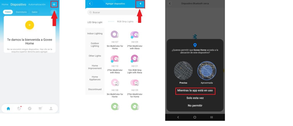 Activamos el bluetooth de nuestro dispositivo, esto para que nos pueda detectar nuestro producto, permitimos nuestra ubicación mientras la app está en uso.