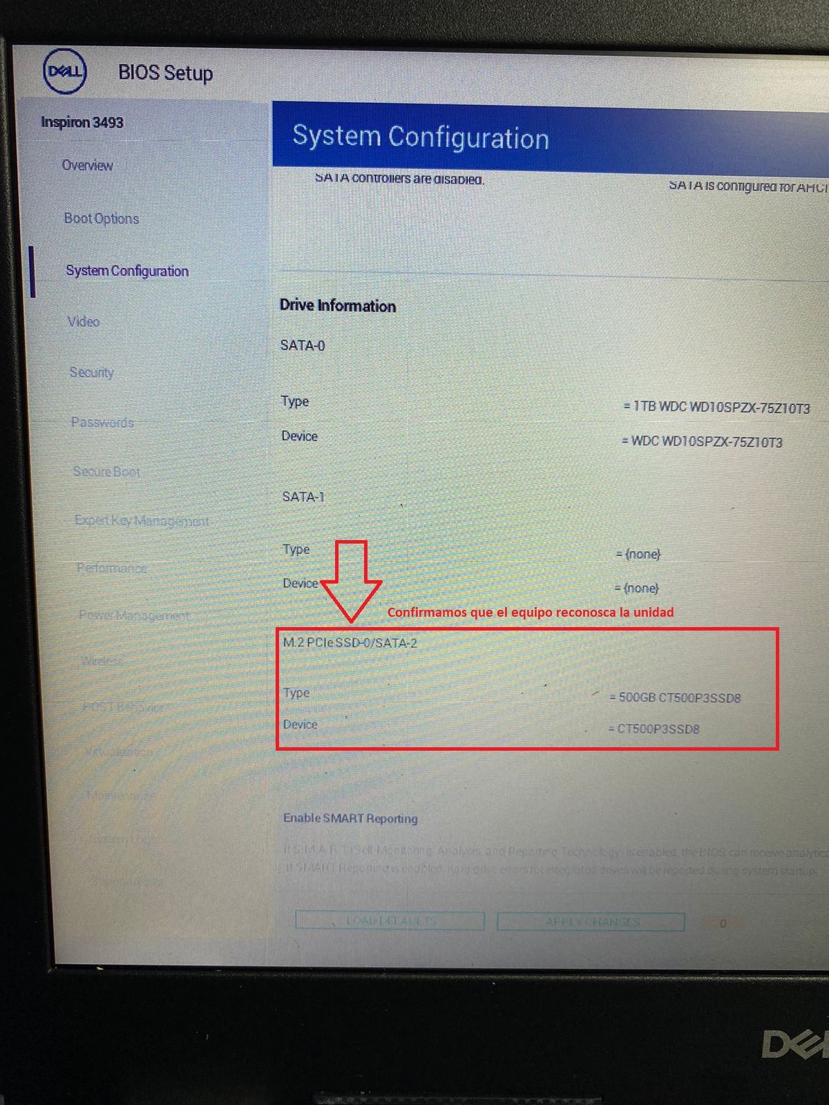 A continuación de brindaran los pasos a seguir para identificar el tipo de ssd compatible con equipo y la forma de instarlo en el miso, en este caso se utilizará un equipo Dell Inspiron 3493 y una unidad de estado sólido de 500GB.