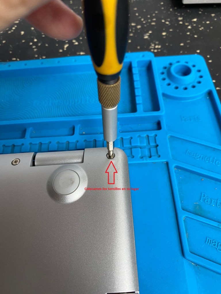 Paso #12: colocamos nuevamente la tapa en su lugar y la aseguramos con los tornillos.