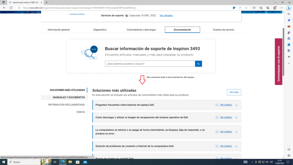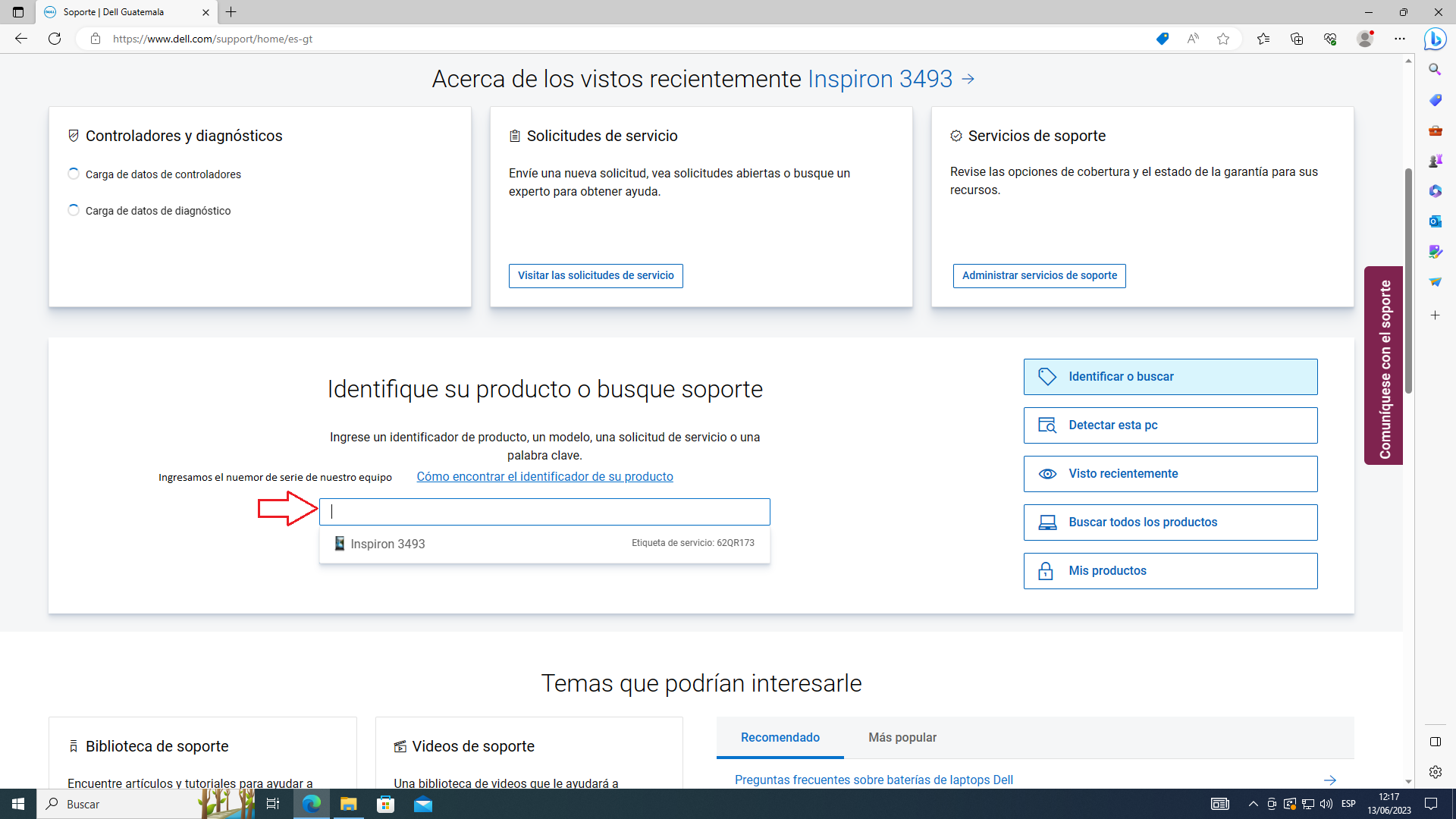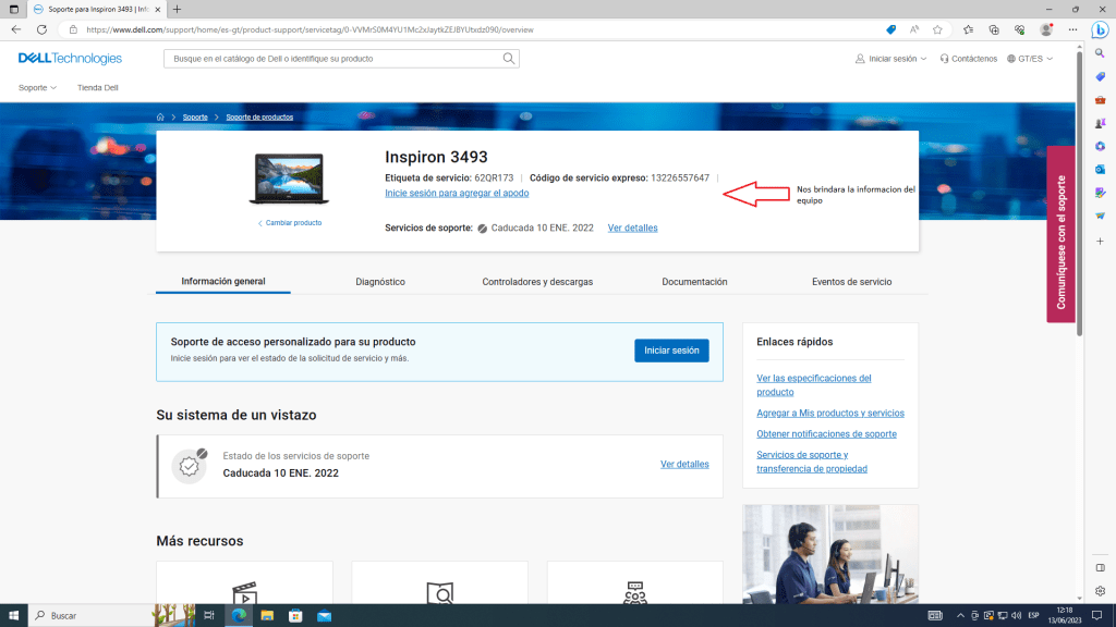 Paso #2: Ya en la página del fabricante ingresamos a soporte e identificamos nuestro equipo ingresando el número de serie.