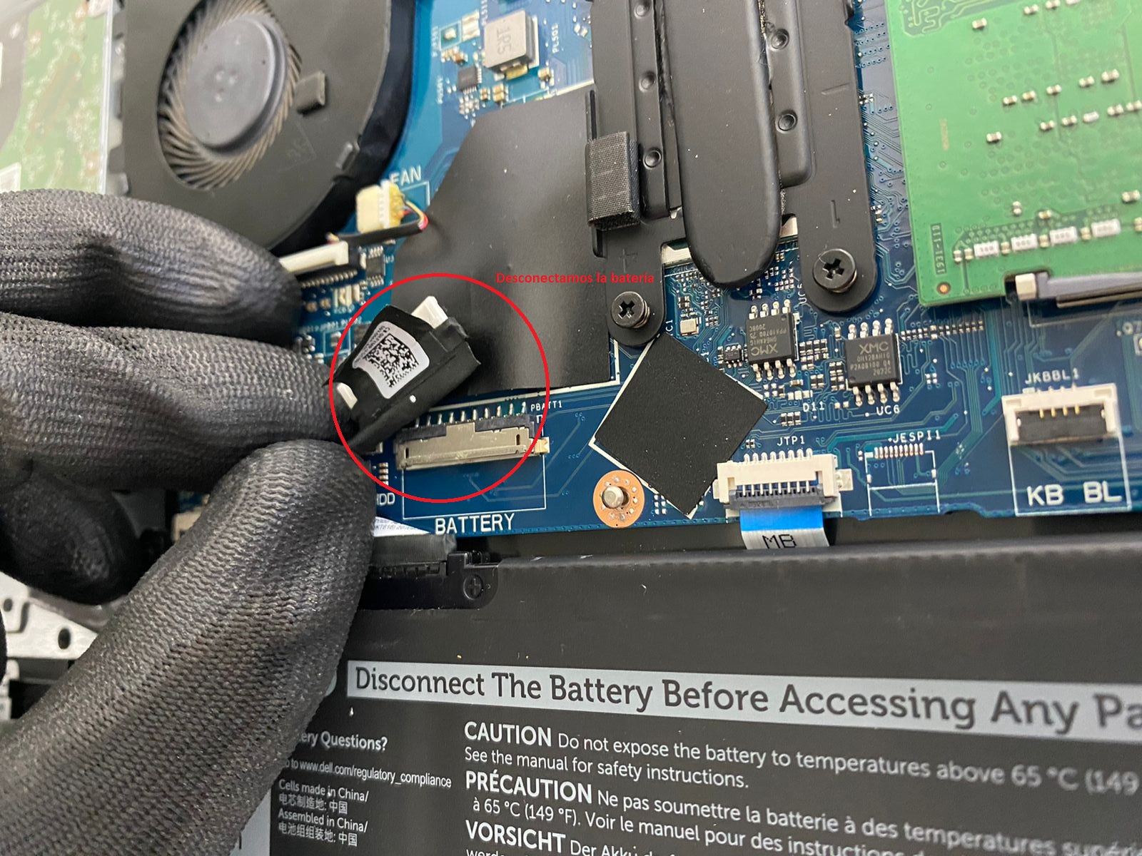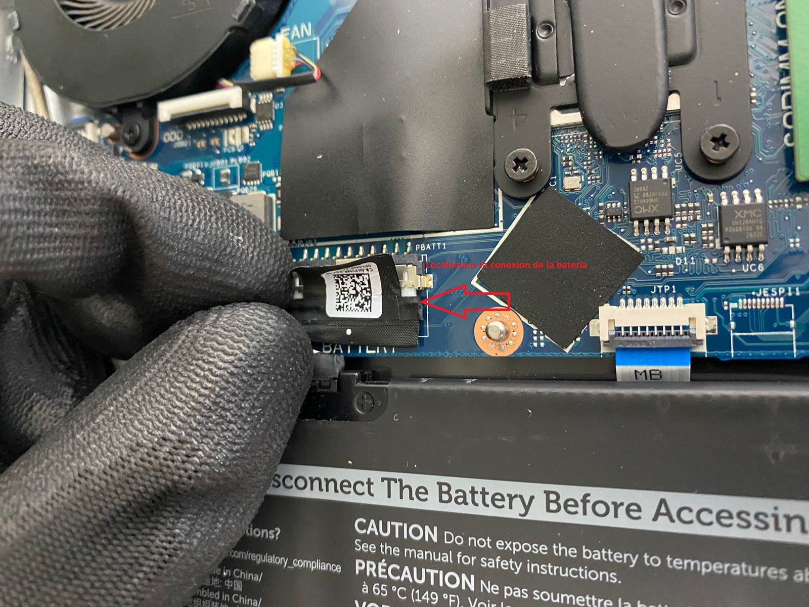 Paso #8: Desconectamos la batería para evitar cualquier riesgo de una descarga en el equipo.