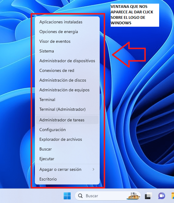 iremos a la parte de inicio del equipo (El logo de Windows), podremos el cursor sobre el mismo.