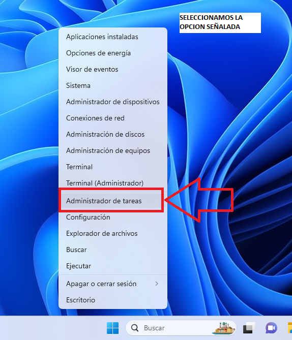 Nos ubicaremos en la opción que no dirá: Administrador de Tareas. Para luego darle click izquierdo y nos abra esta ventana