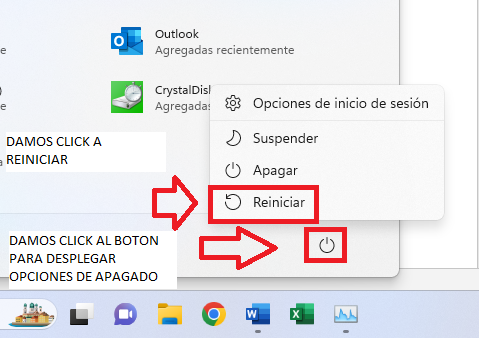 Reiniciamos el equipo y confirmamos que la aplicación no se haya iniciado en la parte de notificaciones, el apartado (^) para confirmarlo, o ingresando nuevamente en administrador de tareas