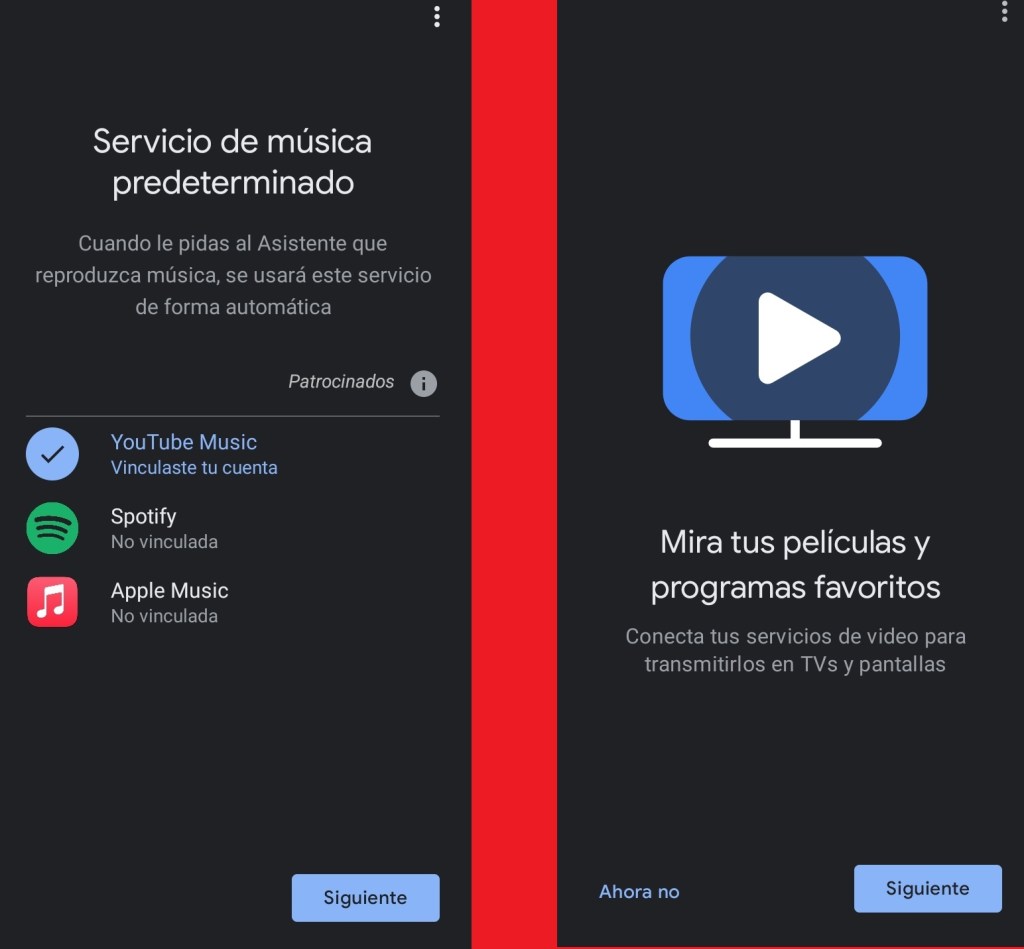 Seleccionamos el tipo de servicio de música predeterminada que deseamos configurar así como también podremos conectar los servicios de video que tenemos disponibles y compatibles con la aplicación Google Home.