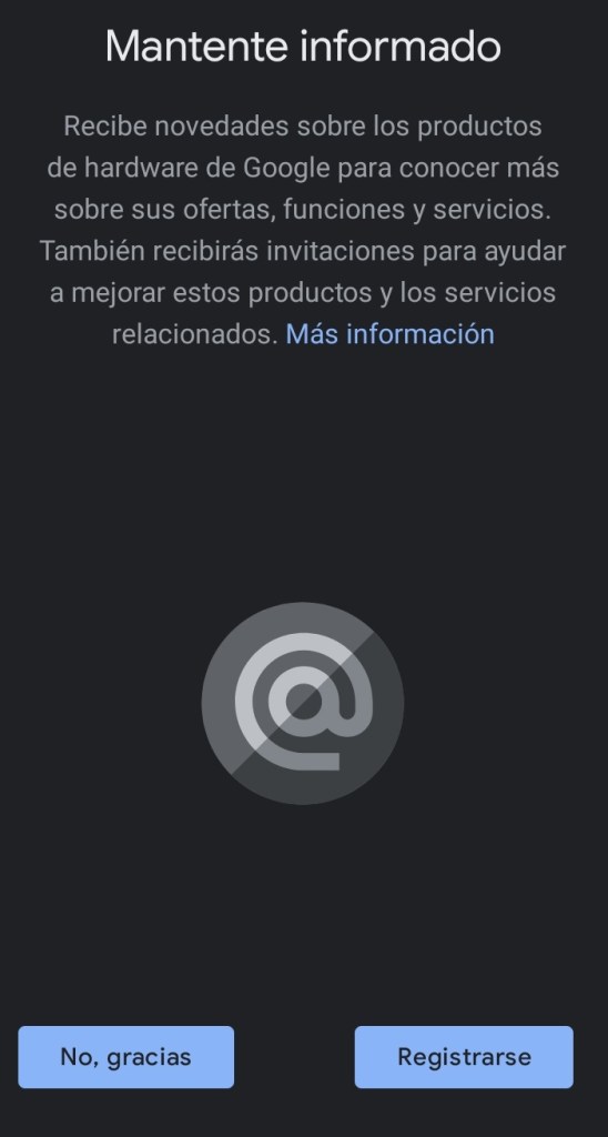 Podremos registrarnos si deseamos mantenernos informados sobre los productos de Google.