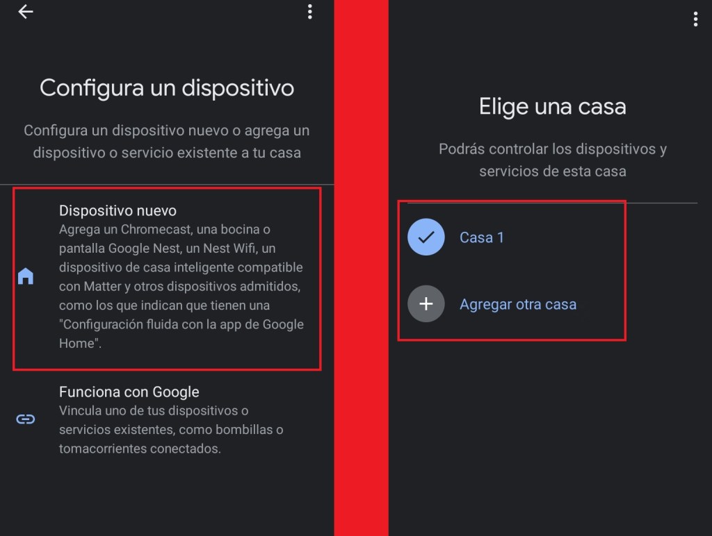 Configuramos un dispositivo nuevo y agregamos la casa que deseamos.