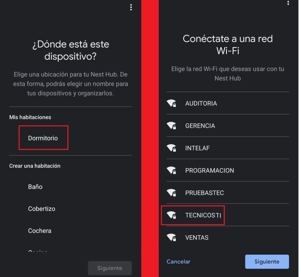 Seleccionamos la ubicación de nuestra bocina Google Nest Hub Smart 1Ra. Gen. 7” y añadimos la red a la que la deseamos agregar.