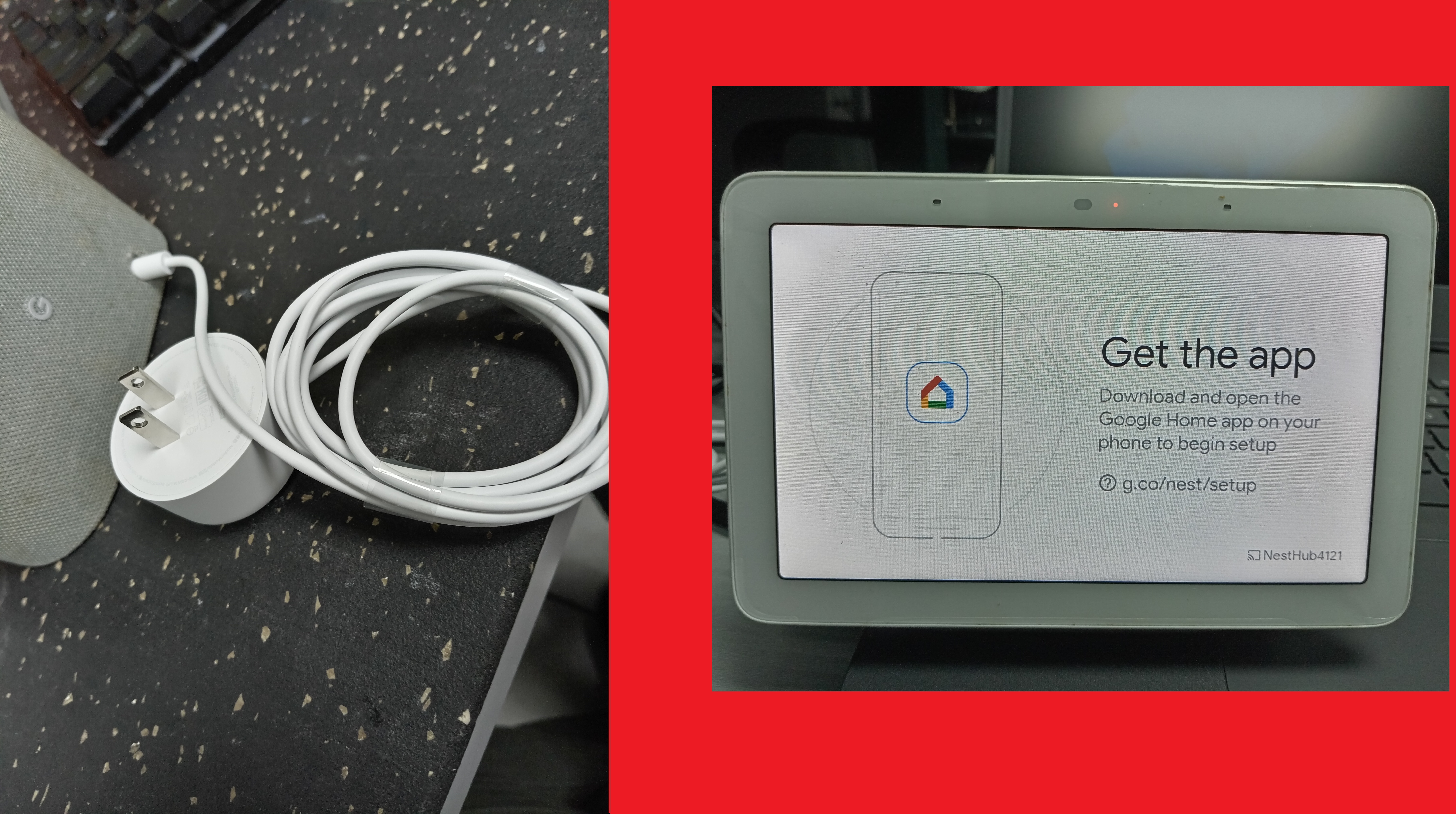 Conectamos nuestra bocina Google Next Hub Smart 1Ra Gen. 7” al adaptador y corriente y de manera automática nuestra bocina encenderá.