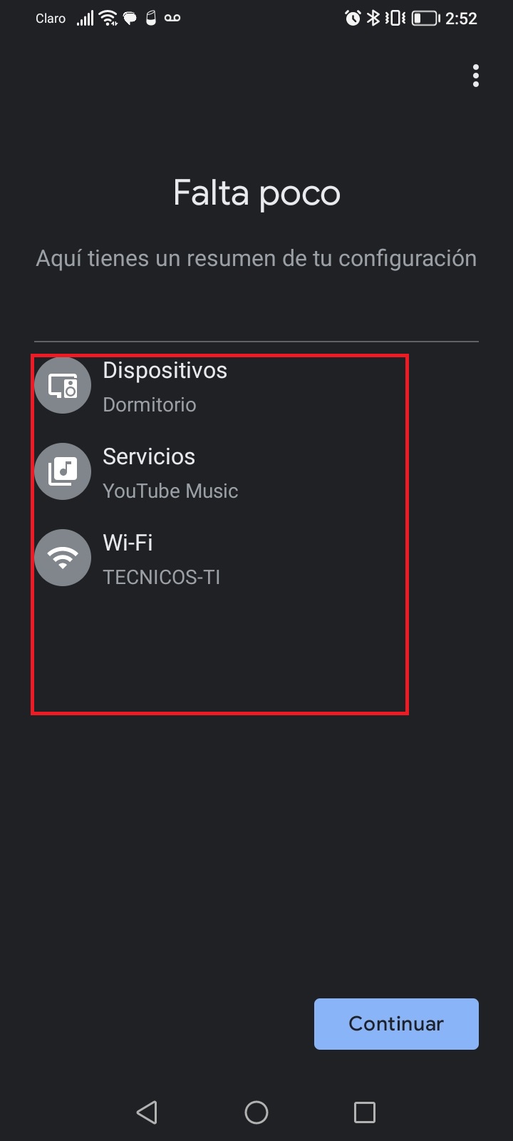 A Continuación, podremos observar un resumen de las configuraciones realizadas en nuestra bocina Google Nest Hub Smart 1Ra. Gen. 7”.