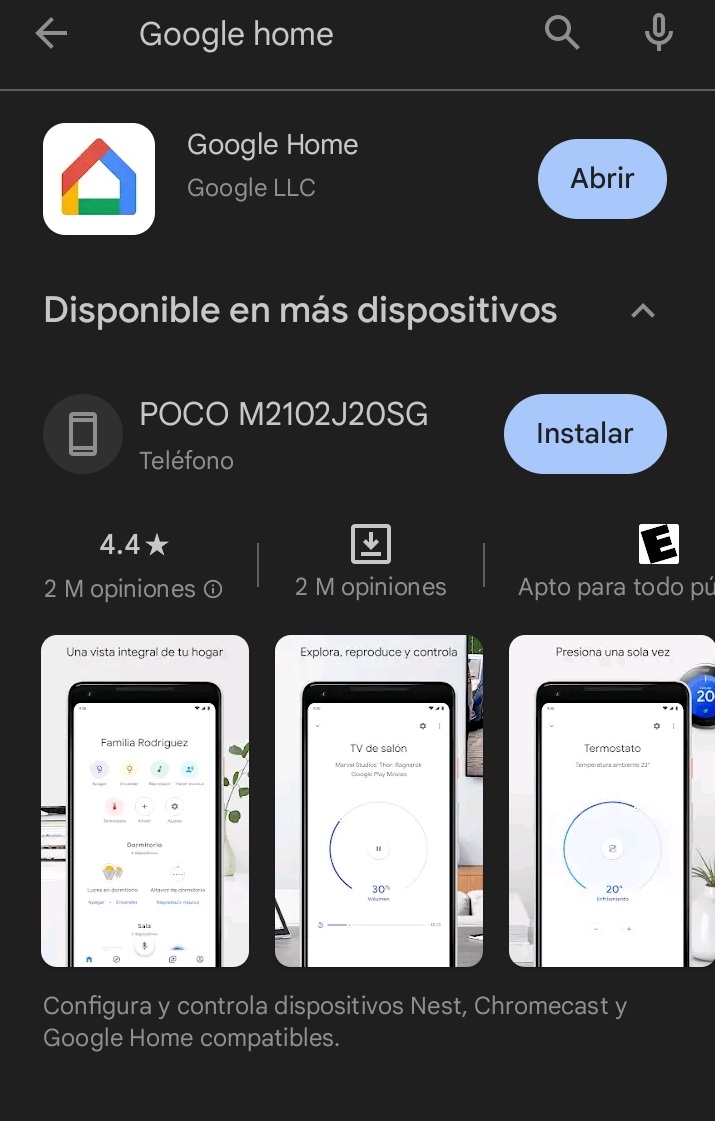 Ingresamos en nuestro dispositivo móvil a la tienda de aplicaciones y descargamos la aplicación Google Home.