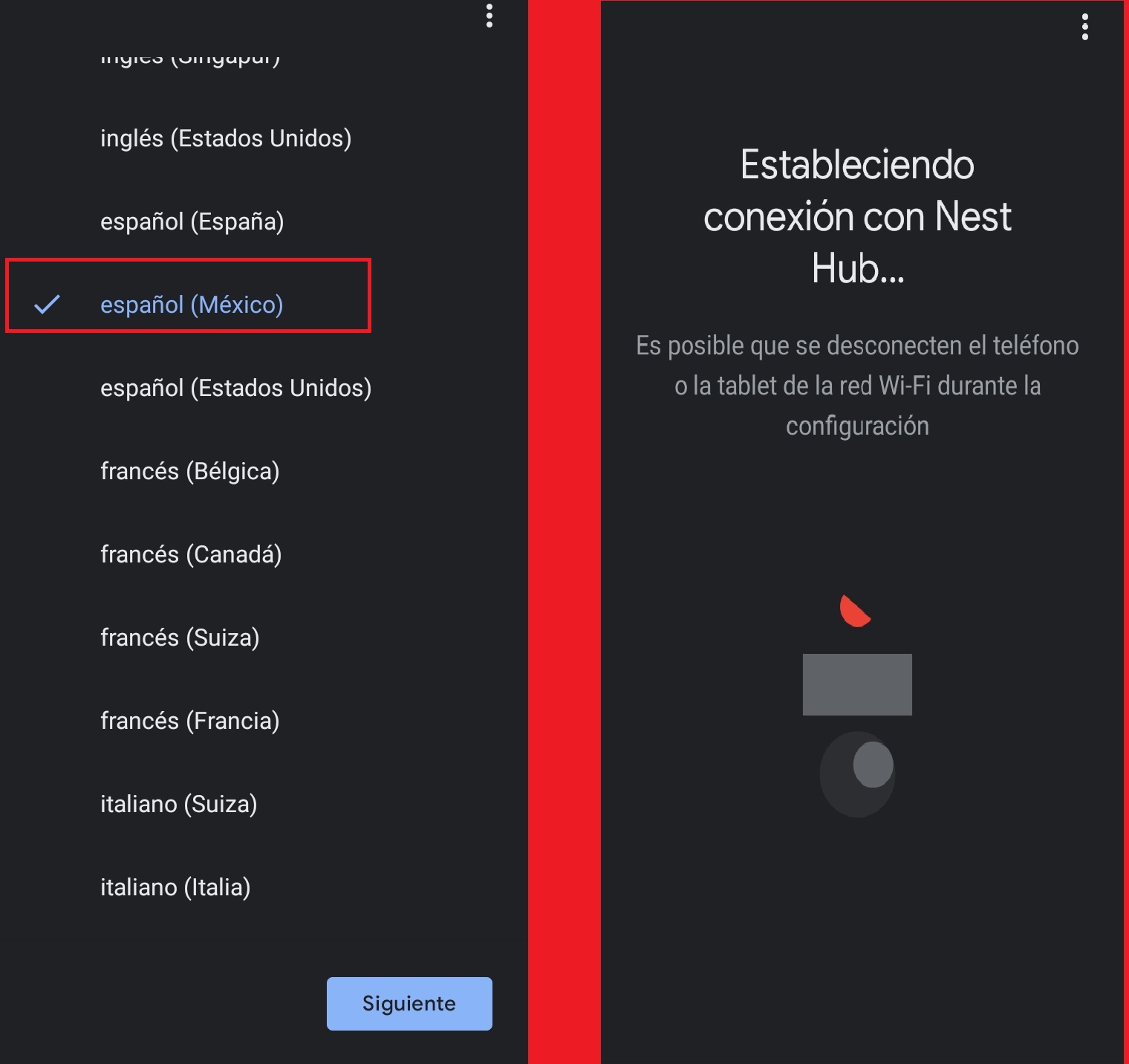 Seleccionamos el idioma en que deseamos configurar nuestra bocina Google Nest Hub Smart 1Ra. Gen. 7” y a continuación iniciara la conexión.