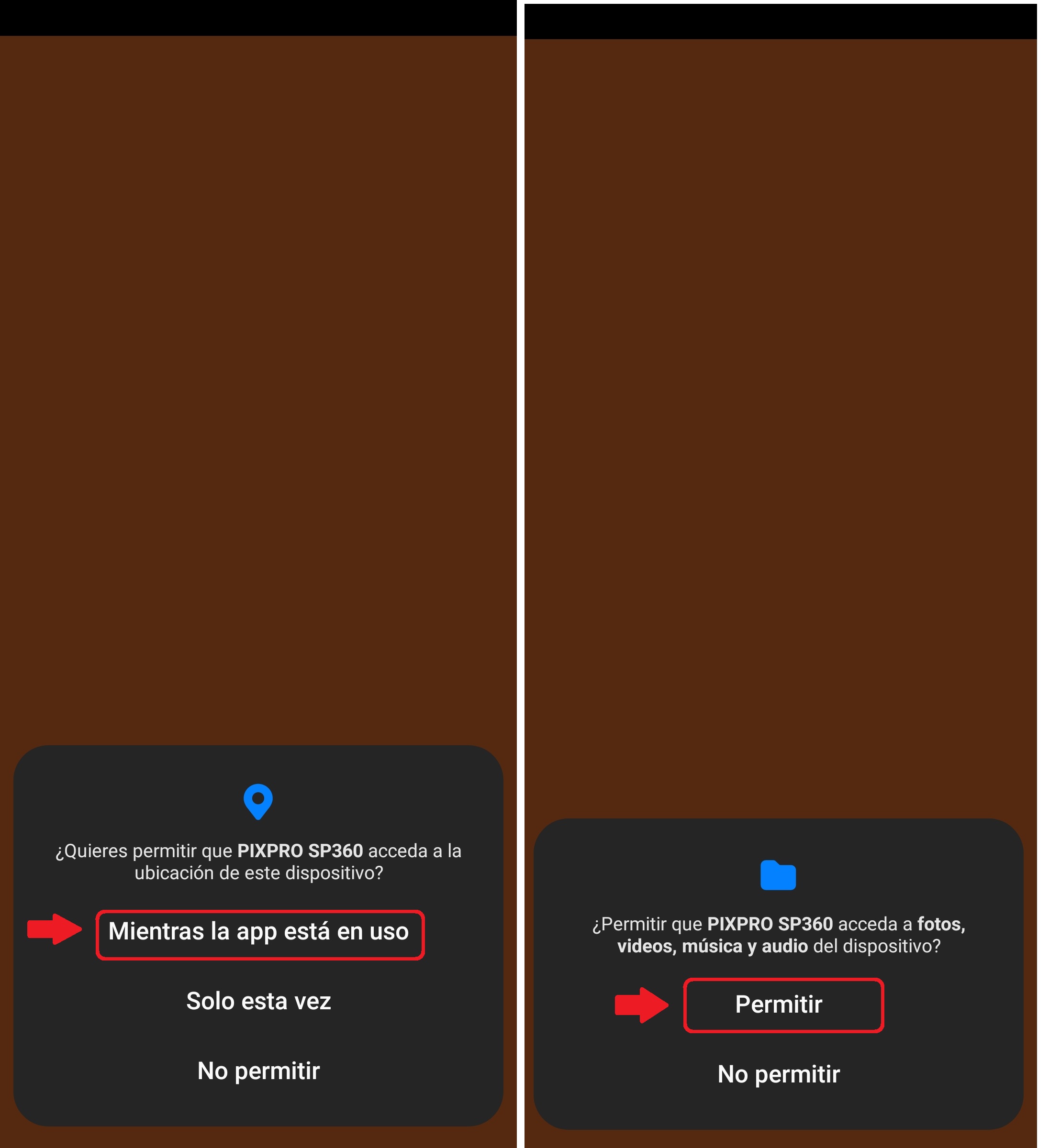 Al abrir la aplicación nos solicitar que demos permisos para la ubicación y almacenamiento en el dispositivo, en ambos daremos permiso.