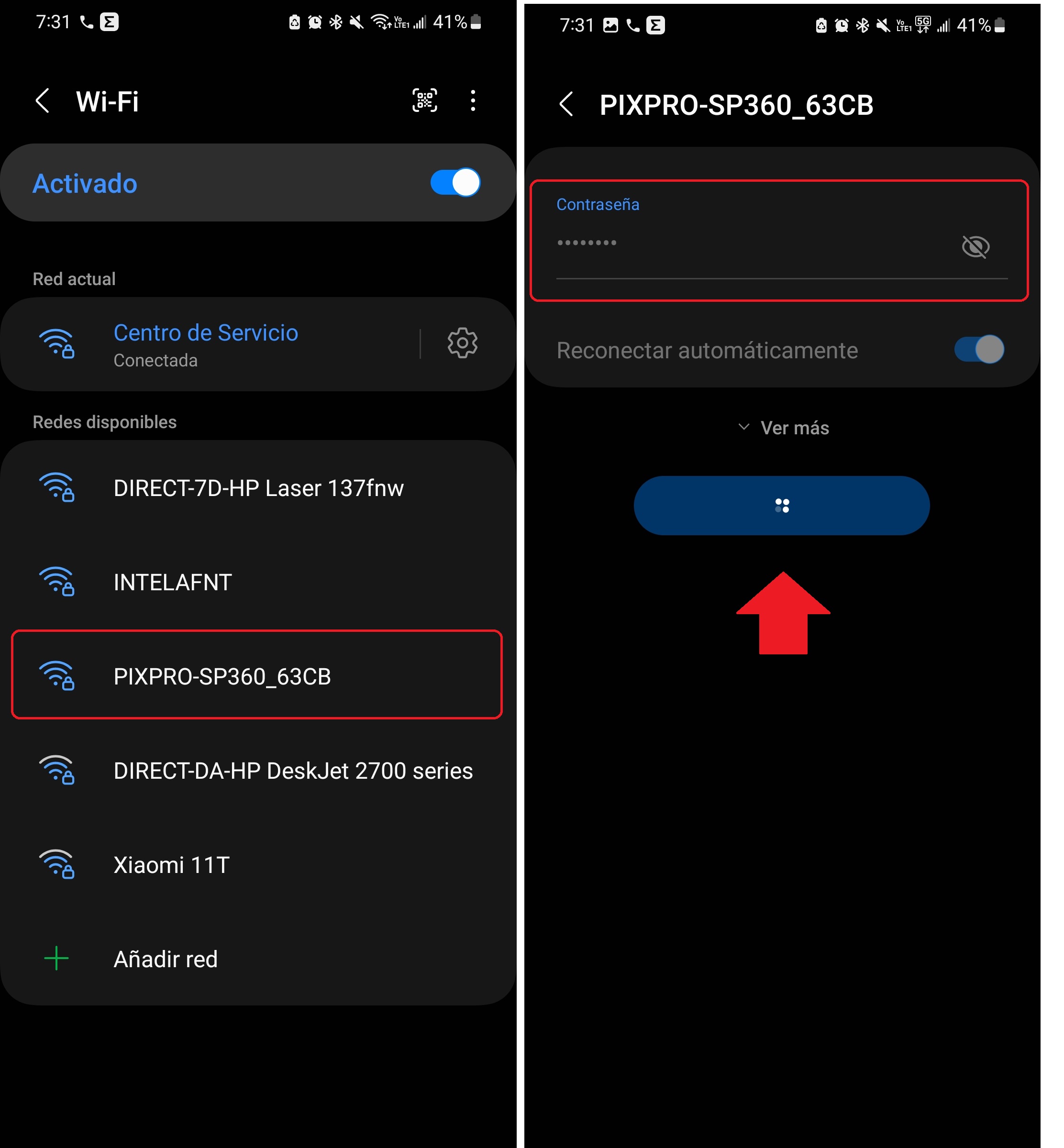 En nuestro dispositivo nos dirigirá a las redes inalámbricas, identificamos la red de nuestra cámara y colocaremos la contraseña.