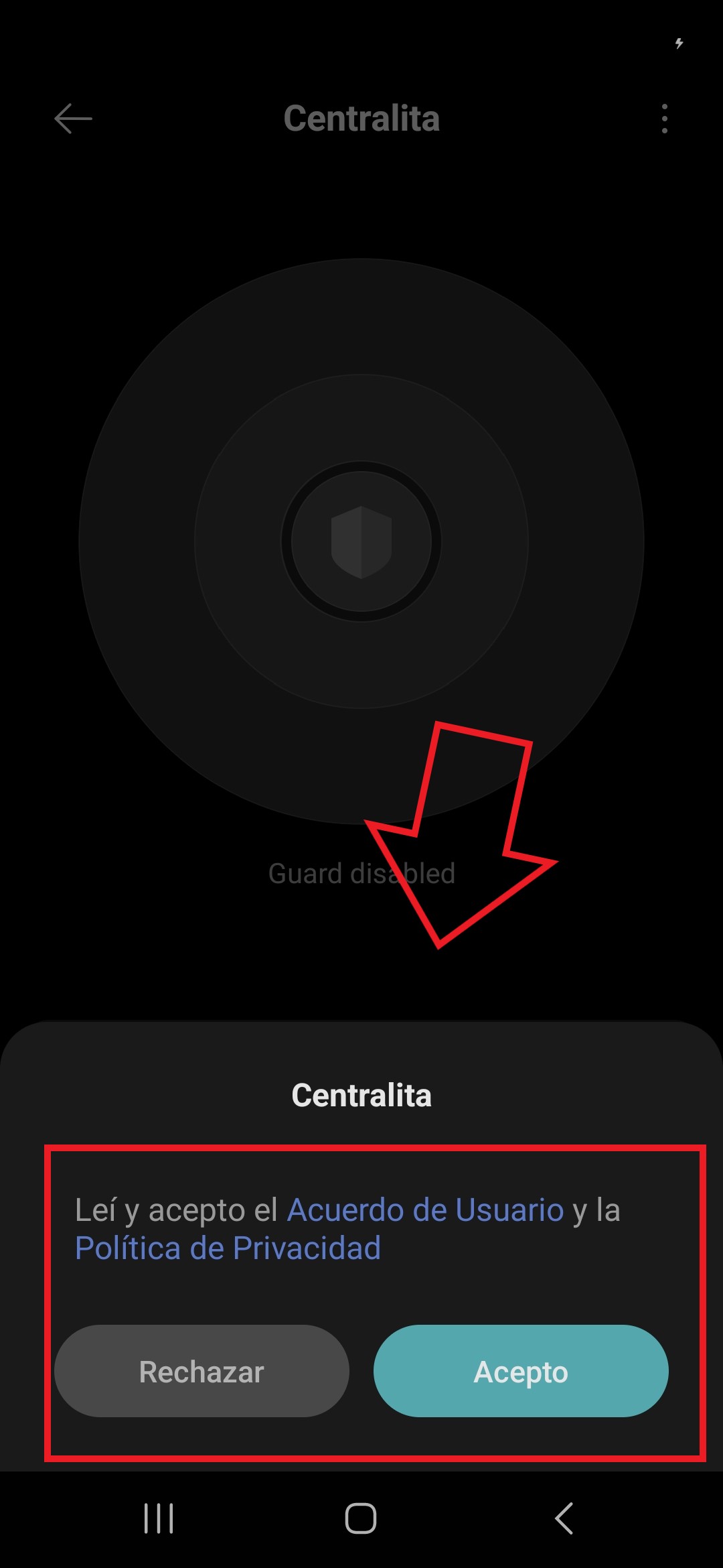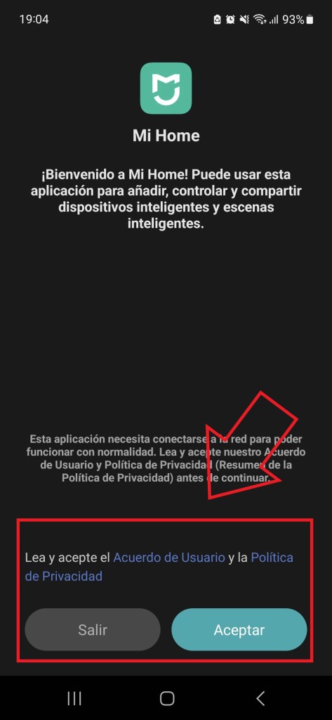 2.2 Ingresamos en la app y como es habitual aceptaremos política de privacidad, términos y condiciones de uso.