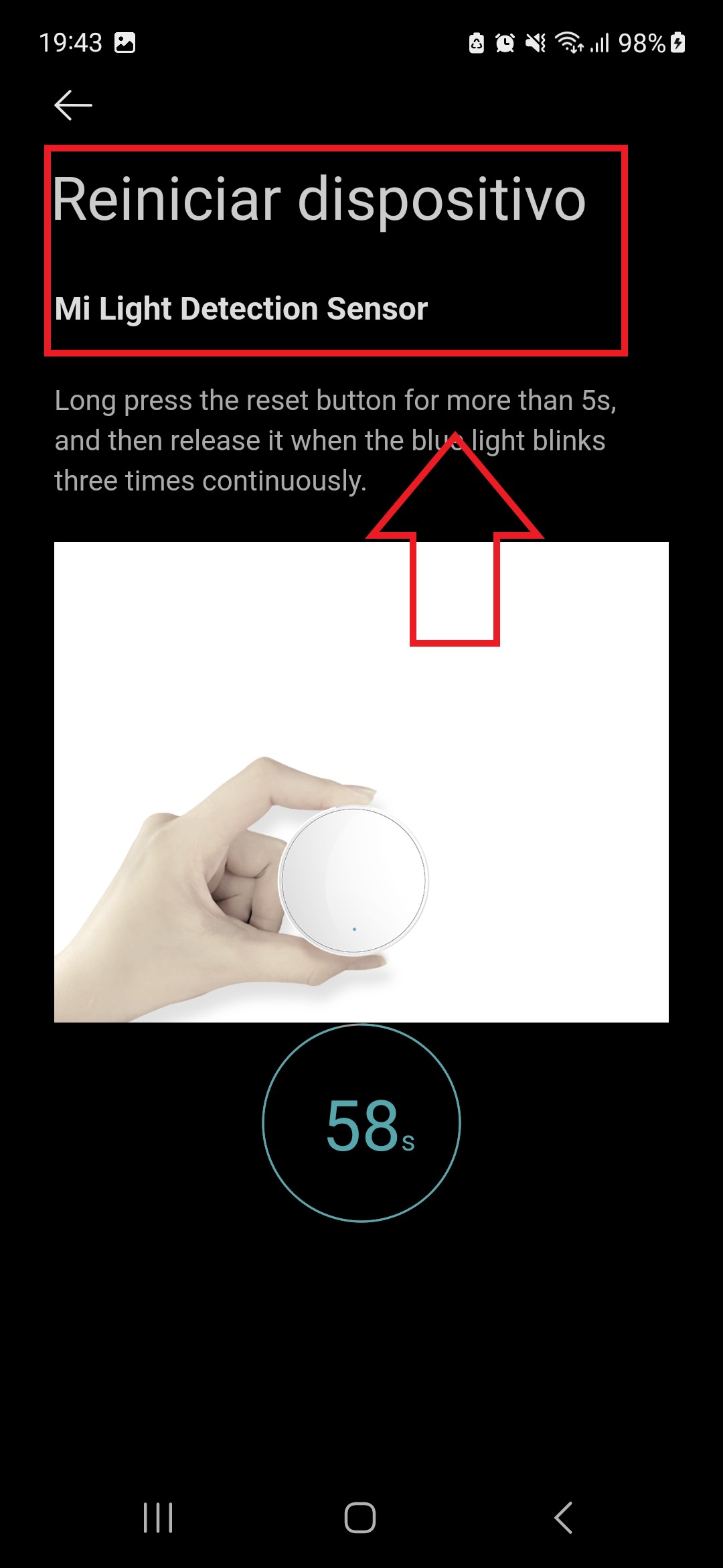 5.4 Solicita reiniciar físicamente el sensor.