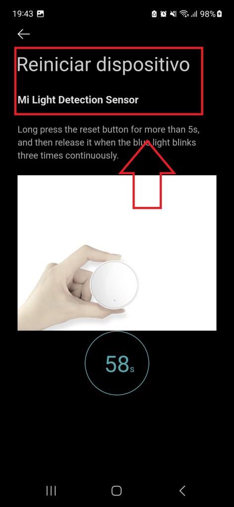 5.5 Presionamos un botón en la parte lateral y cuando muestra led azul soltamos.