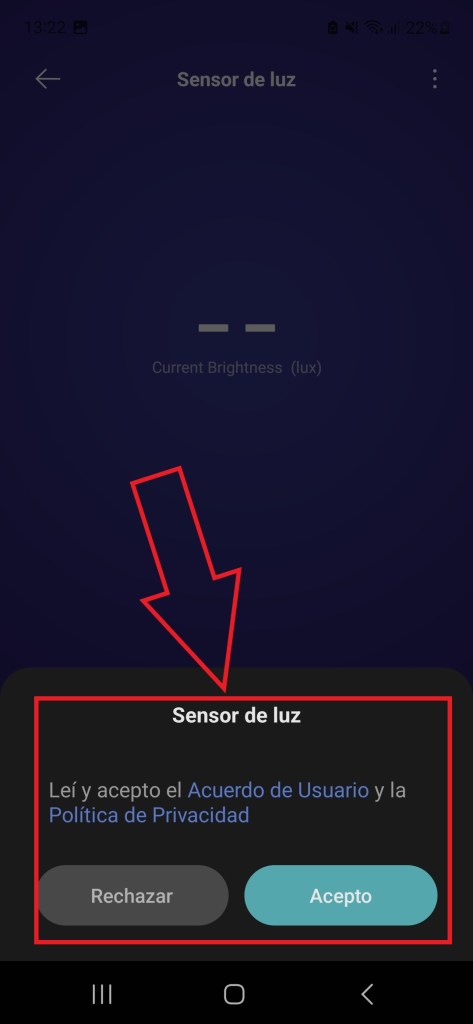 6.2 Aca se cubre una parte del sensor y en la app refleja precisión de luz que recibe