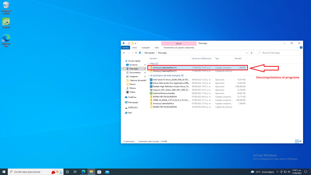 Ingresamos a la capeta de descargas extraemos la aplicación y la instalamos en nuestro equipo.