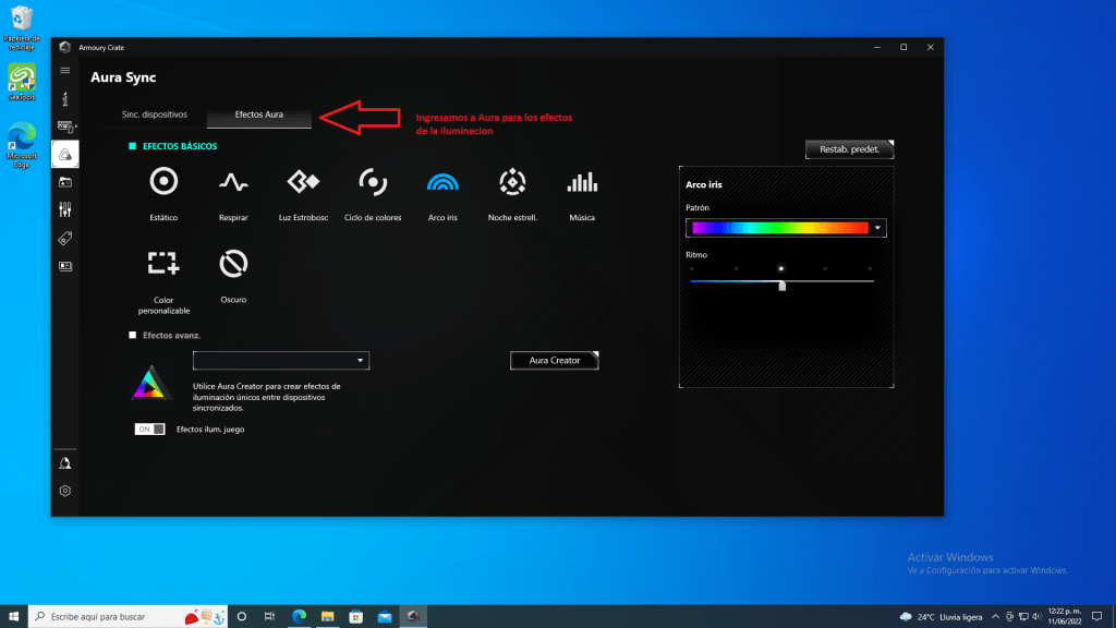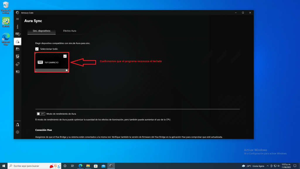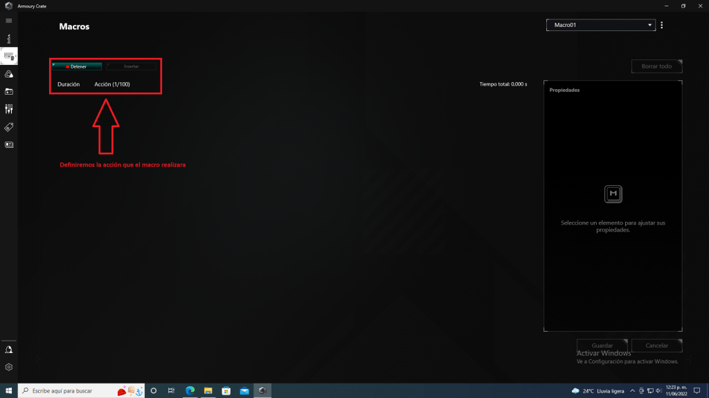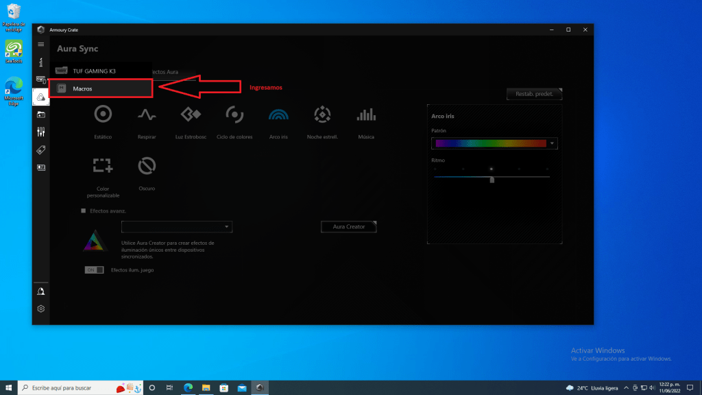 Ingresamos en Aura Sync y podremos cambiar la iluminación además en la opción Macros podremos asignar algún Macro a nuestro teclado.