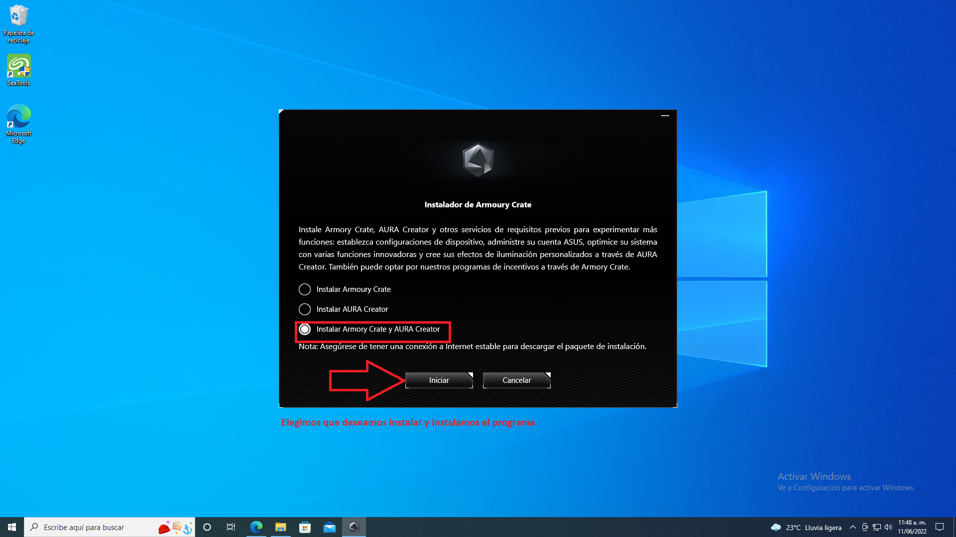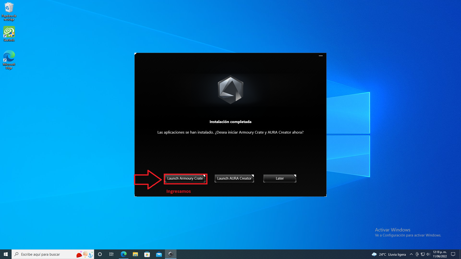 Ingresamos a nuestro navegador y descargamos la aplicación Armoury Crate desde la página oficial de Asus