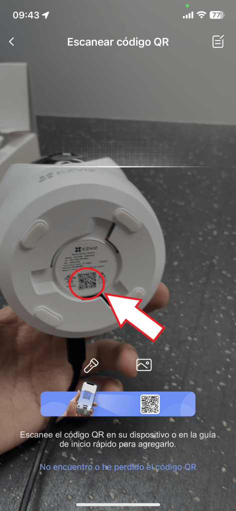 Escaneamos el Código QR que está en la parte inferior de la cámara y automáticamente la aplicación estaría detectando la cámara que estamos intentando vincular.