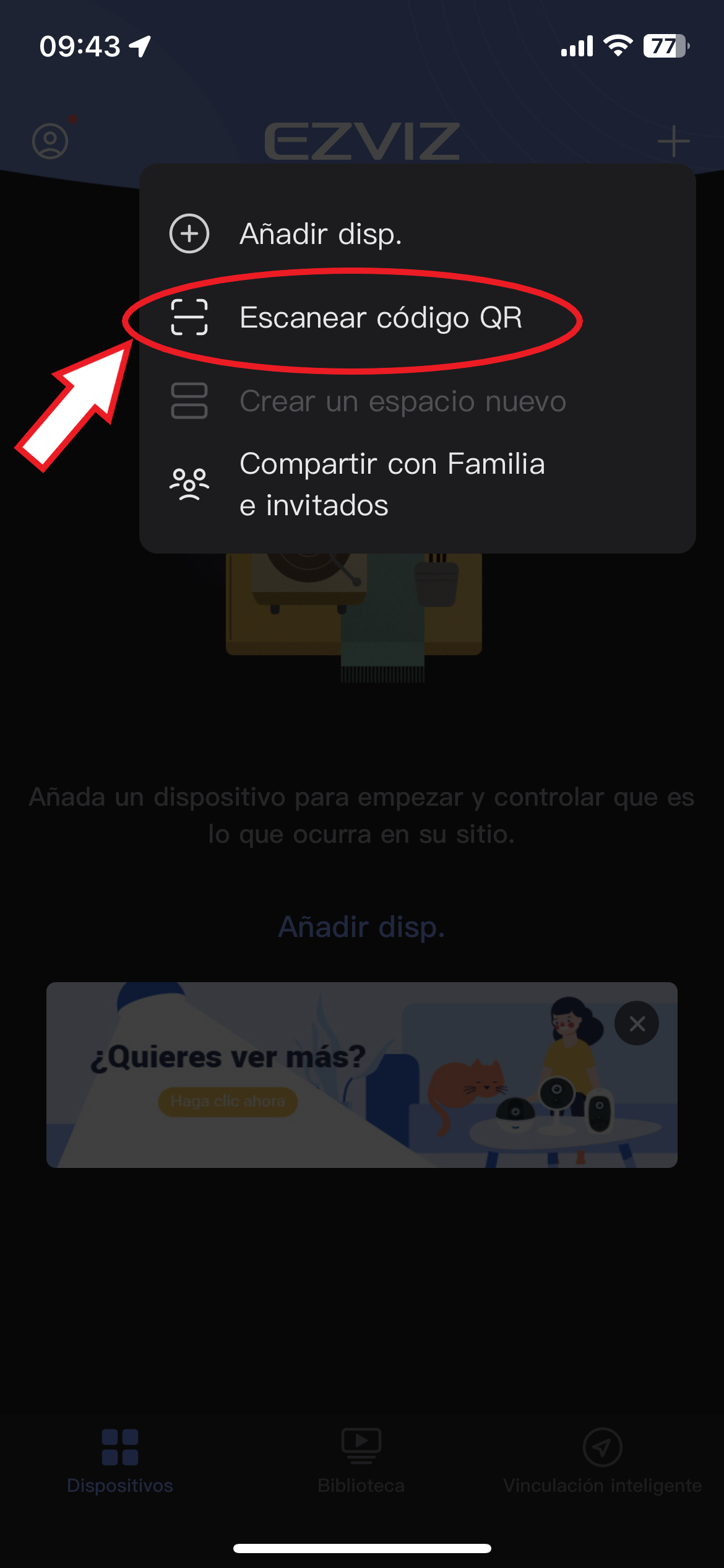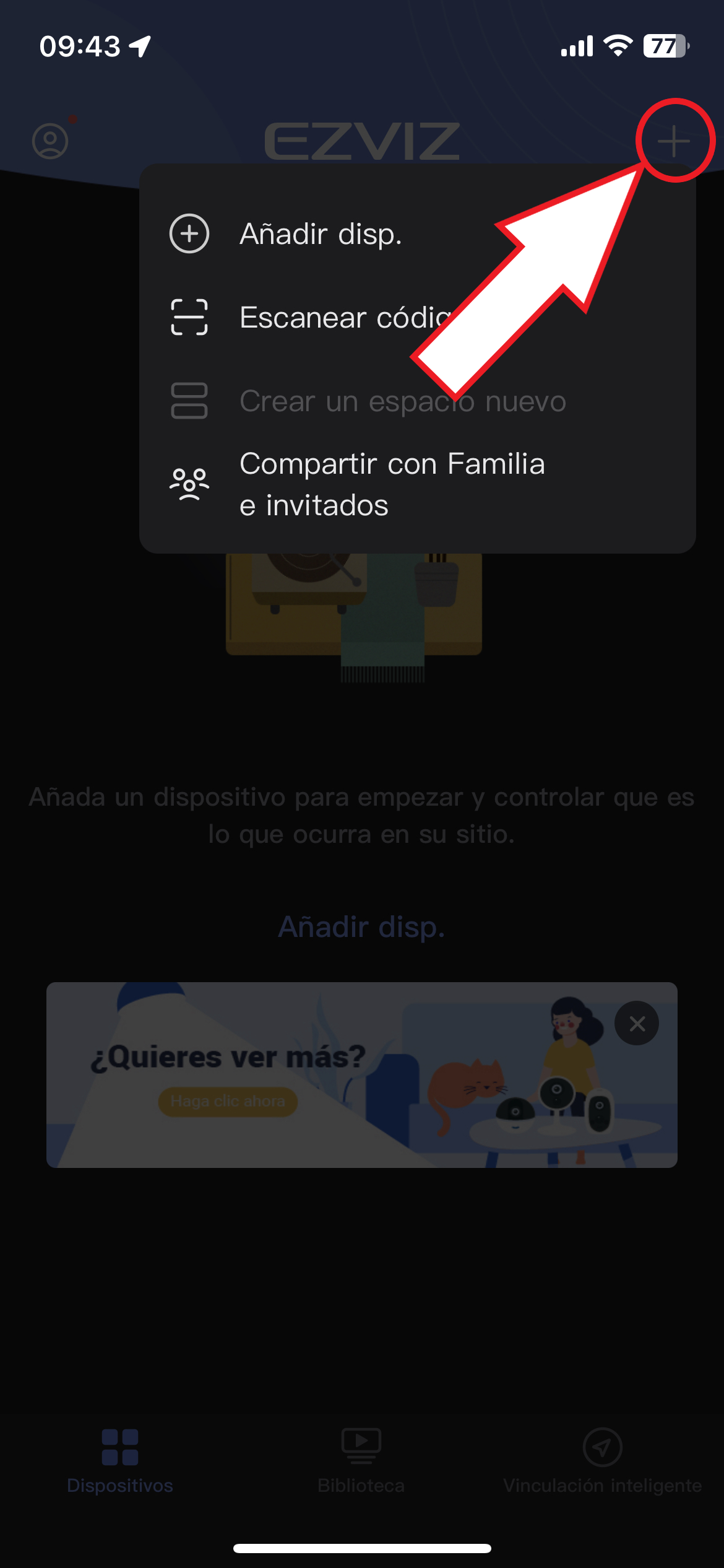 Una vez dentro de la aplicación de EZVIZ le damos en el signo “+”