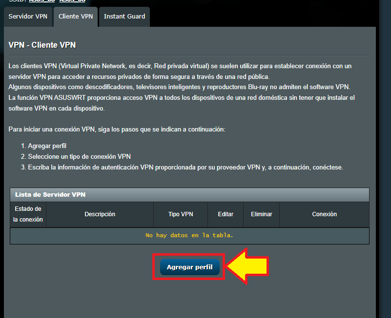 En el apartado de Cliente VPN, damos clic en “Agregar perfil”.