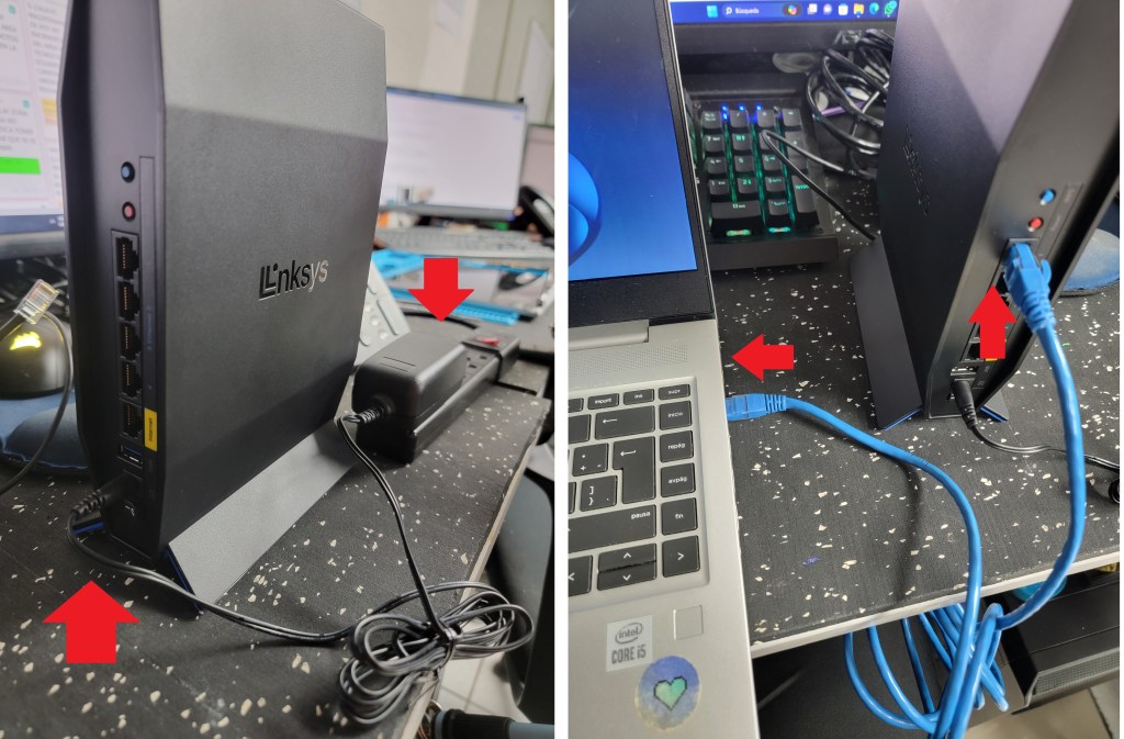 Como primer paso tendremos que conectar nuestro router a la corriente, luego con el cable de red conectamos a uno de los puertos ethernet y a nuestro equipo.