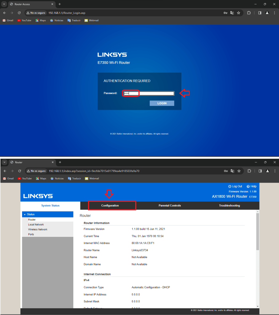 Nos llevara a la pagina de inicio y nos solicitara la clave a administrador la cual seria admin y seleccionamos login, luego nos abrirá el interfaz para configurar nuestro router y nos dirigimos a la pestaña configuración.