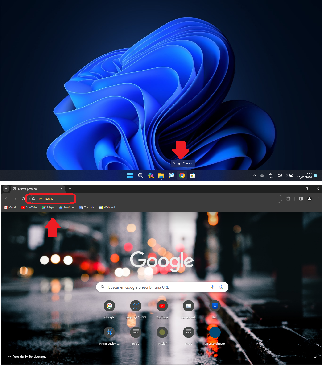 En nuestro equipo nos dirigimos a nuestro navegador en este caso utilizaremos google chrome, en el buscador colocaremos la siguiente direcciona «192.168.1.1» y daremos enter.