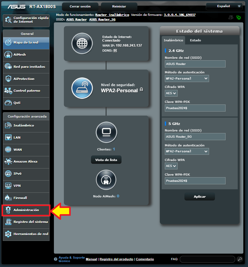 El router RT-AX1800S de la marca Asus es un dispositivo que nos puede ofrecer un wifi fluido y confiable a múltiples dispositivos en nuestro hogar. El router también cuenta con 4 puertos RJ45 para conectar nuestros dispositivos por cable. Este router cuenta con la opción de utilizarlo como modo Access Point o punto de acceso lo que quiere decir que a través de la conexión de un cable de red que viene del router principal al puerto WAN del router Asus RT-AX1800S, nos genera una nueva red para tener una mejor cobertura inalámbrica. En este articulo les mostraré como hacer la configuración del router en modo Access Point o Punto de Acceso