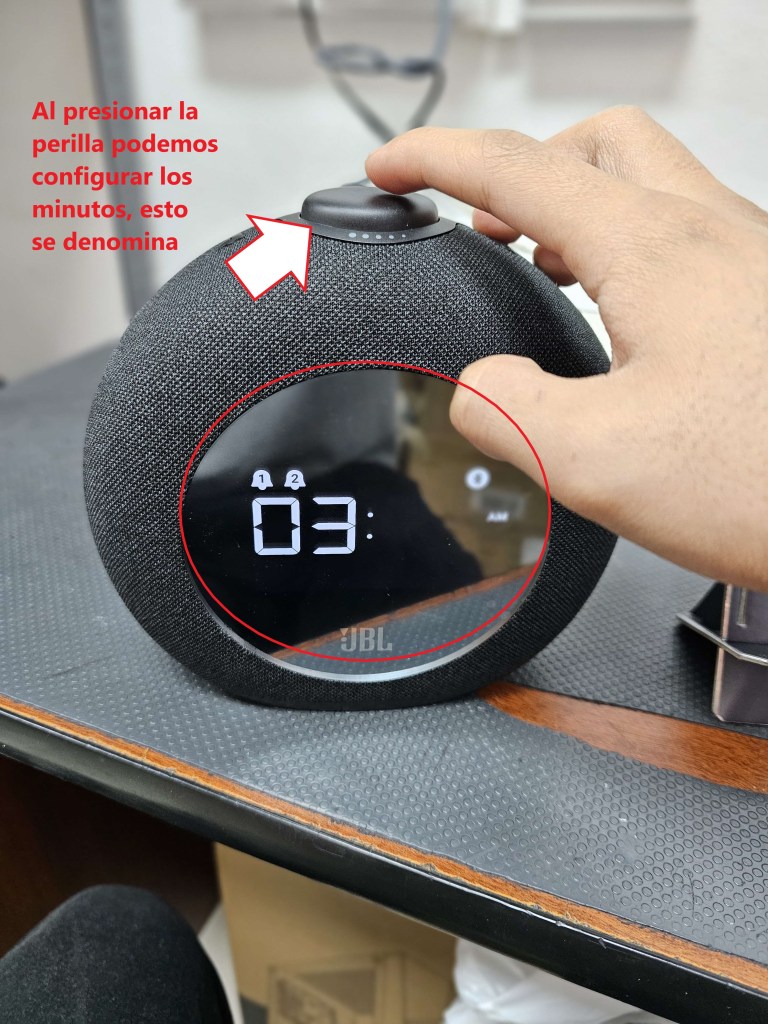 Al presionar la perilla nos permite configurar el minuto exacto en donde deseemos que suene la alarma.