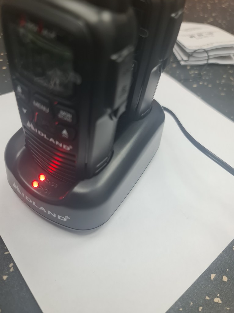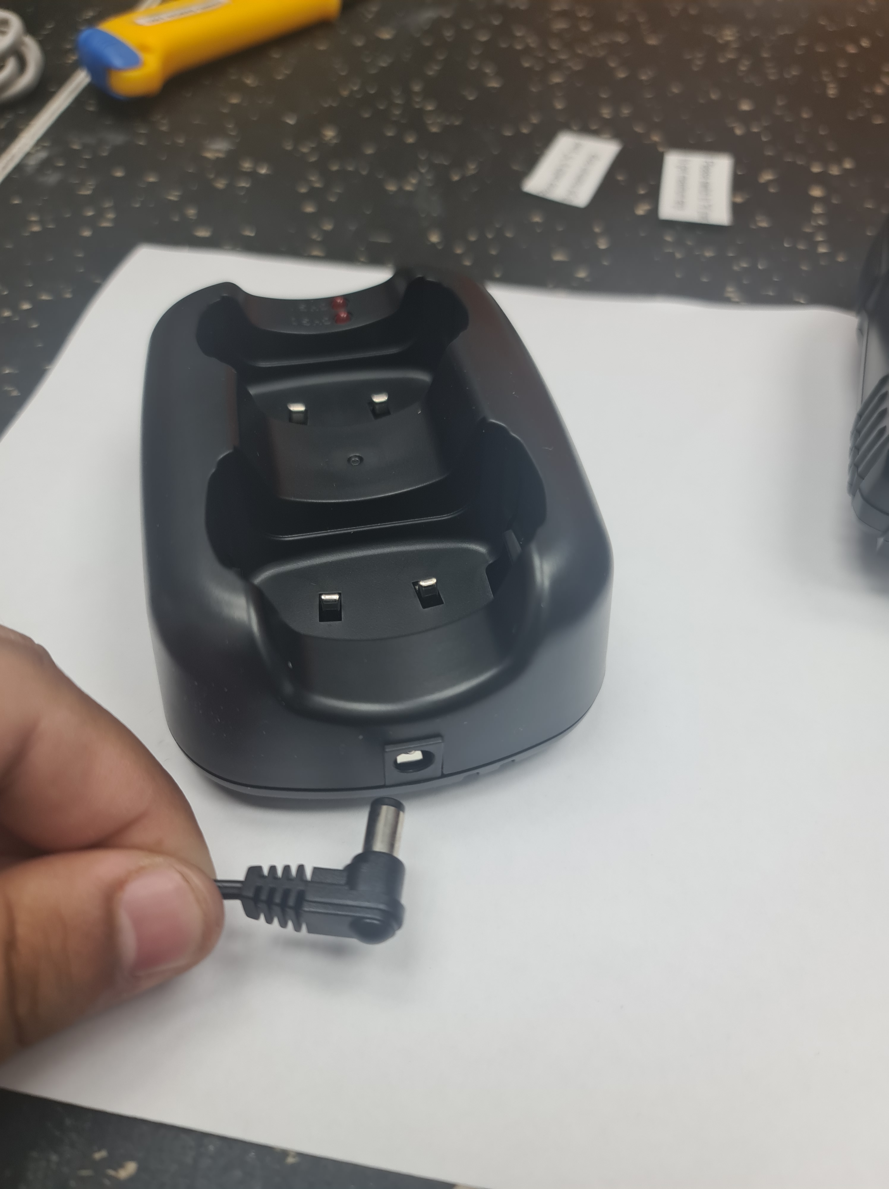Paso 1. Conectamos el cargador a la base de carga de los radios Midland y el otro extremo al tomacorriente de 110V