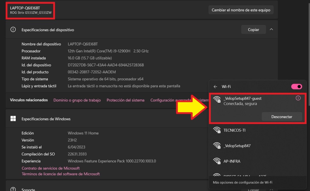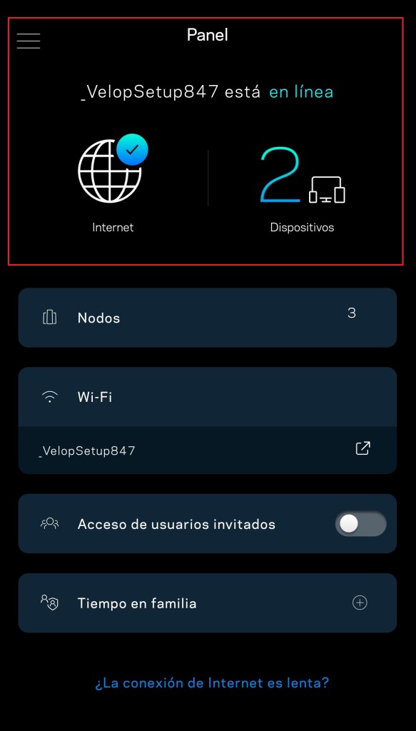 Desde el panel principal de la aplicación de Linksys ingresamos a “Dispositivos” y podemos ver que ya nos parece conectada la computadora y está ubicada en el área de red de invitados.