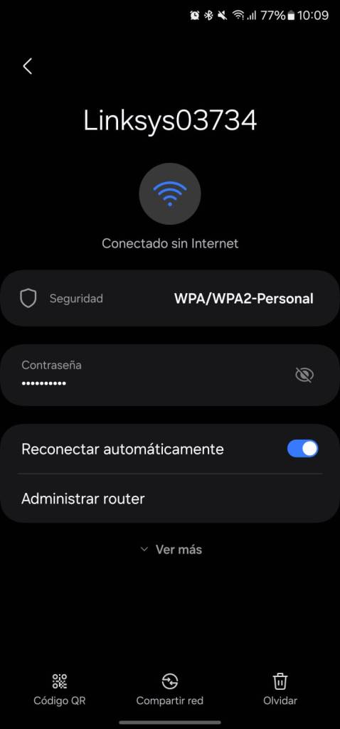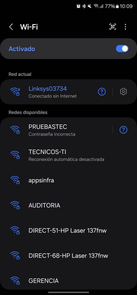 Paso #3: En nuestro dispositivo nos vamos al apartado de redes Wifi, en la cual buscamos el nombre de nuestro router el cual viene indicado en la parte inferior, en este caso seria “LinkSys03734”, el clave así mismo viene en la parte inferior