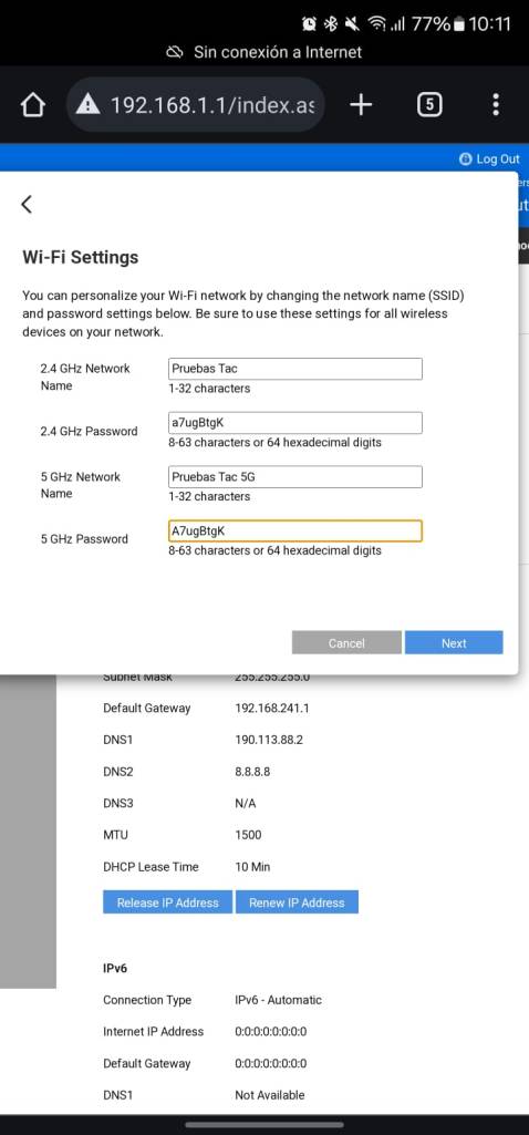 Paso #6: Al haber llenado los datos, esperamos unos momentos a que nuestro router se reinicie y nos volvemos a conectar a nuestra red ya configurada.