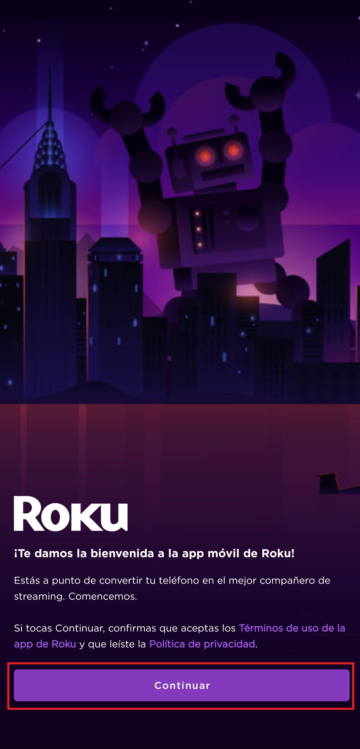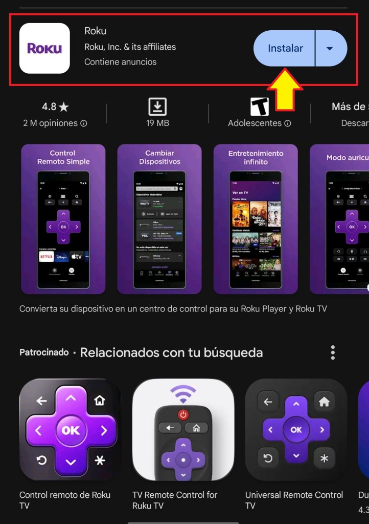 Necesitamos haber realizado la configuración del Roku Premiere y luego descargamos la aplicación de Roku en nuestro celular.