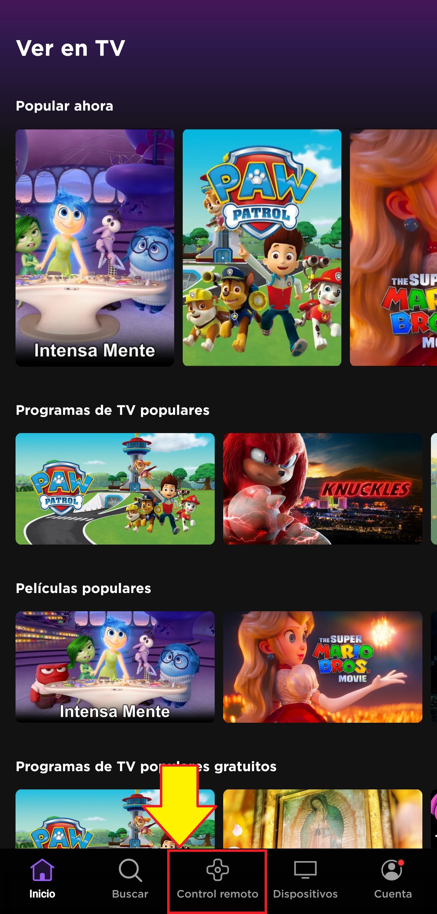 Nos muestra la pantalla principal de la aplicación y damos clic en “control remoto”