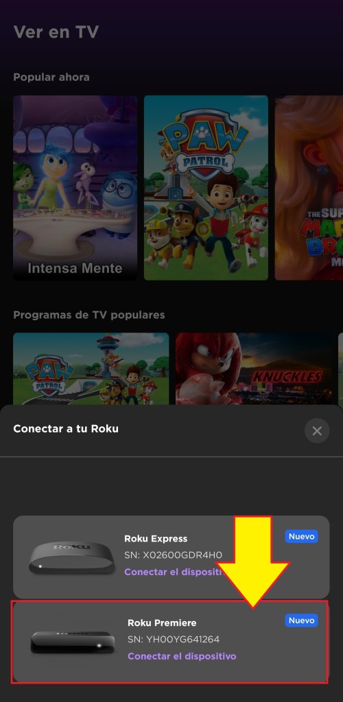 Nos desplegará una lista de los dispositivos Roku disponibles y seleccionamos el que queremos controlar.