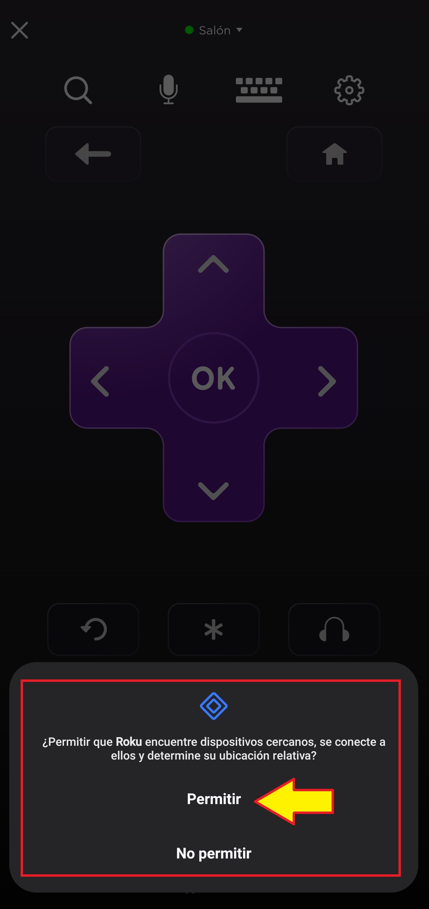 Nos pedirá permiso para encontrar dispositivos cercanos.