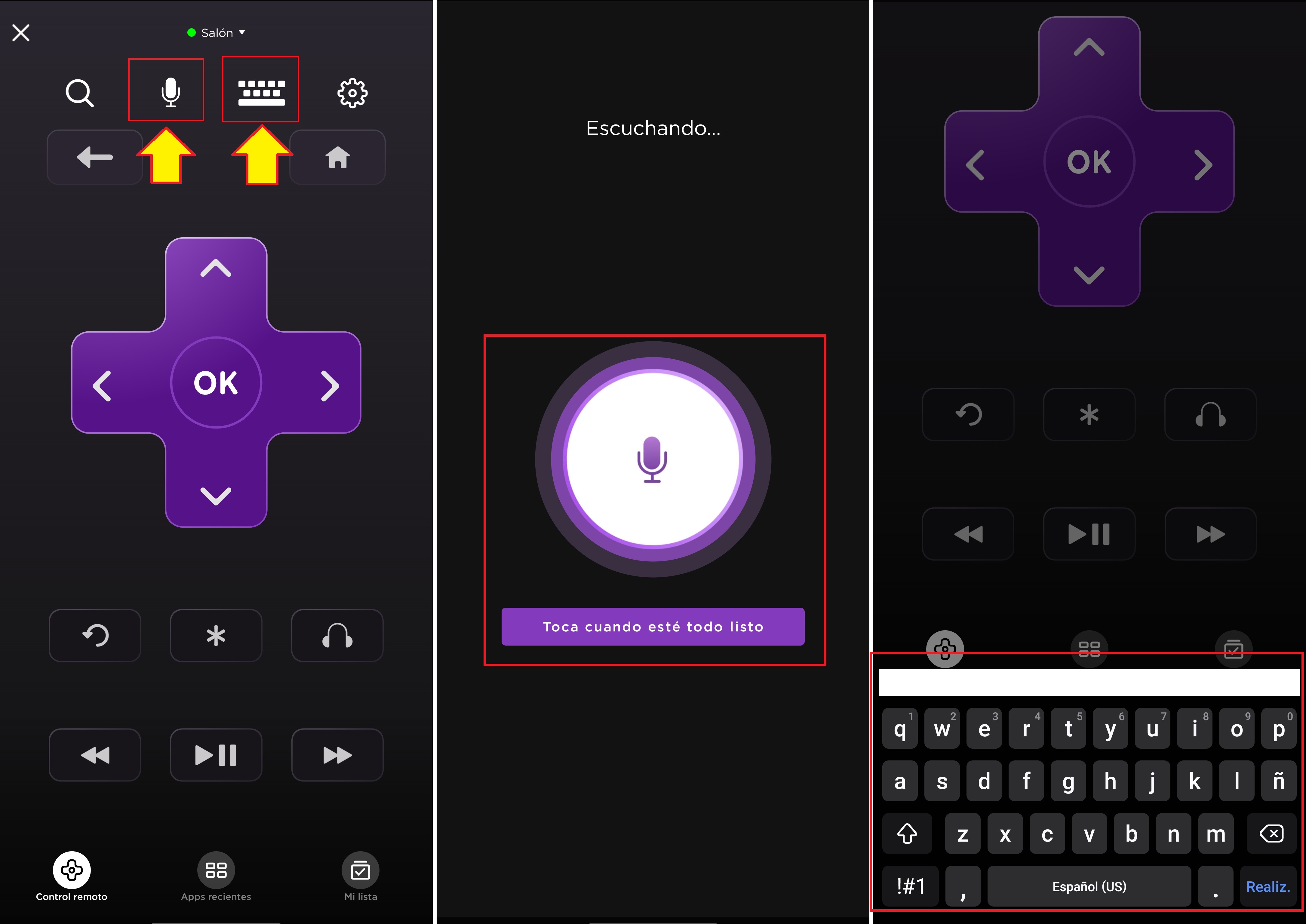 Ahora que ya está configurado podemos ver que nos aparece el control en nuestro celular como si fuera el control físico. La ventaja de este control a través del celular es que podemos utilizarlo para darle instrucciones por voz o por el mismo teclado del celular facilitando así la escritura y búsqueda del contenido.