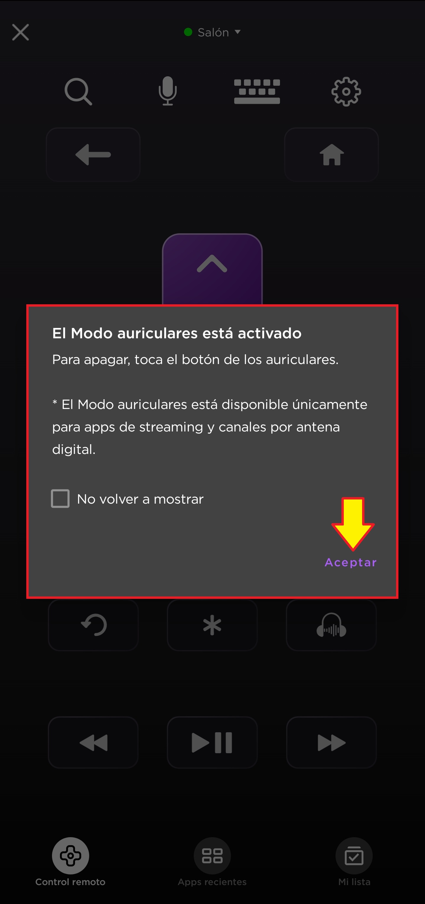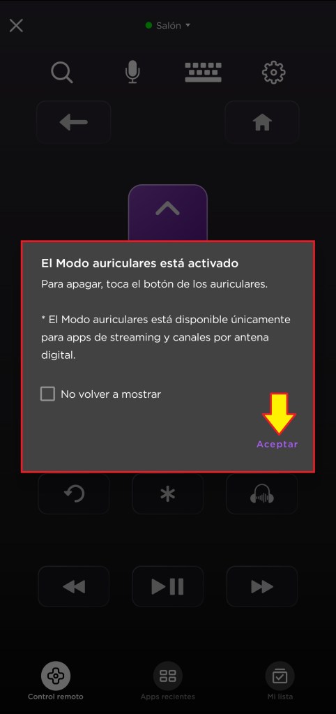 Nos mostrara una notificación de que el “modo auricular” esta activado y damos clic en “aceptar”.