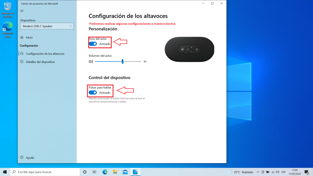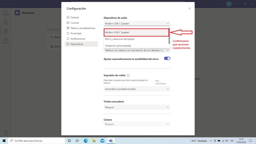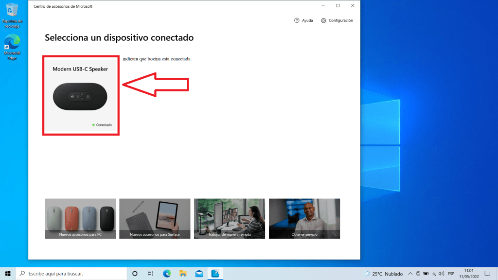 Paso 4: Seleccionar la bocina Microsoft USB-C 8KZ-00001 como dispositivo principal