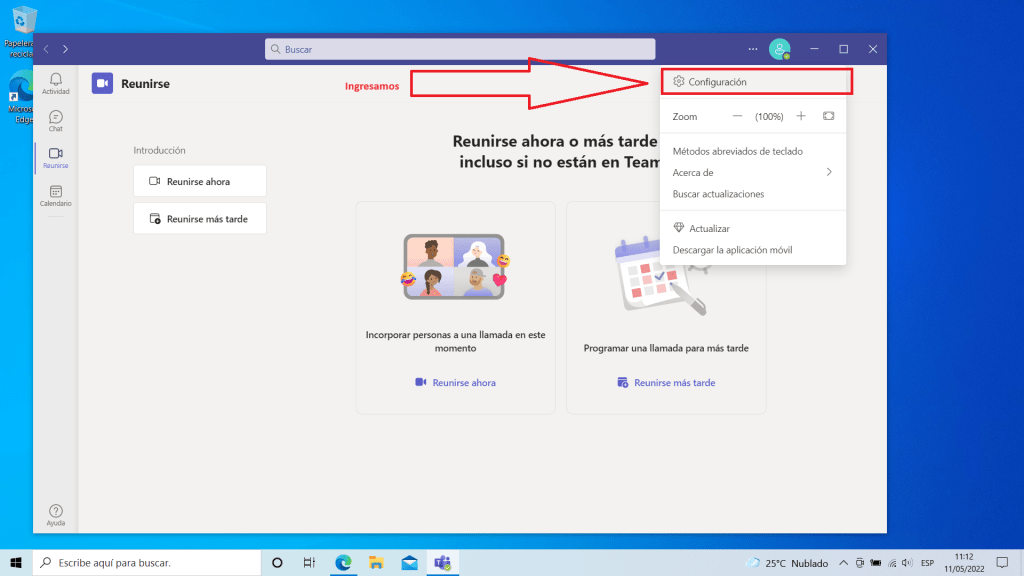 Paso 3: Acceder a la configuración de Microsoft Teams