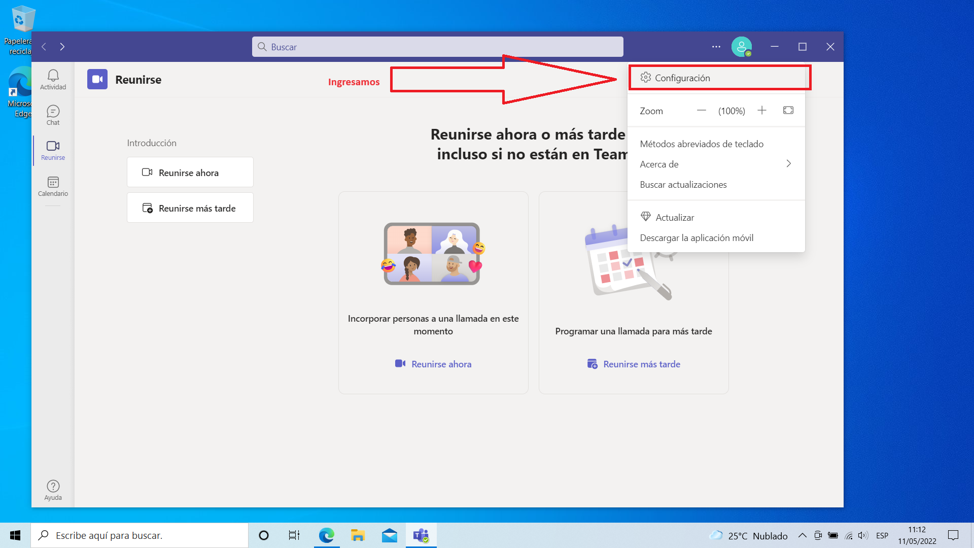 Abrí la aplicación Microsoft Teams en tu computadora e ingresá al menú de Configuración.
